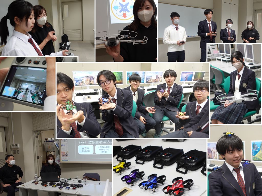 令和7年11月21日(金)に、2年生「情報II」授業選択生徒がDXハイスクールの取り組みとしてドローンについて学びました。